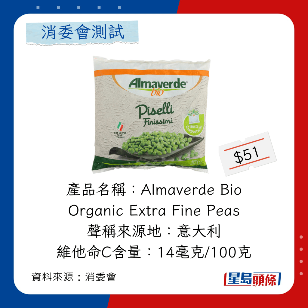 豌豆粒:每100克售價(jià)則由$4.4至$15.1,價(jià)格差異逾2倍,然而售價(jià)最高及最低的樣本均獲得5分總評。
