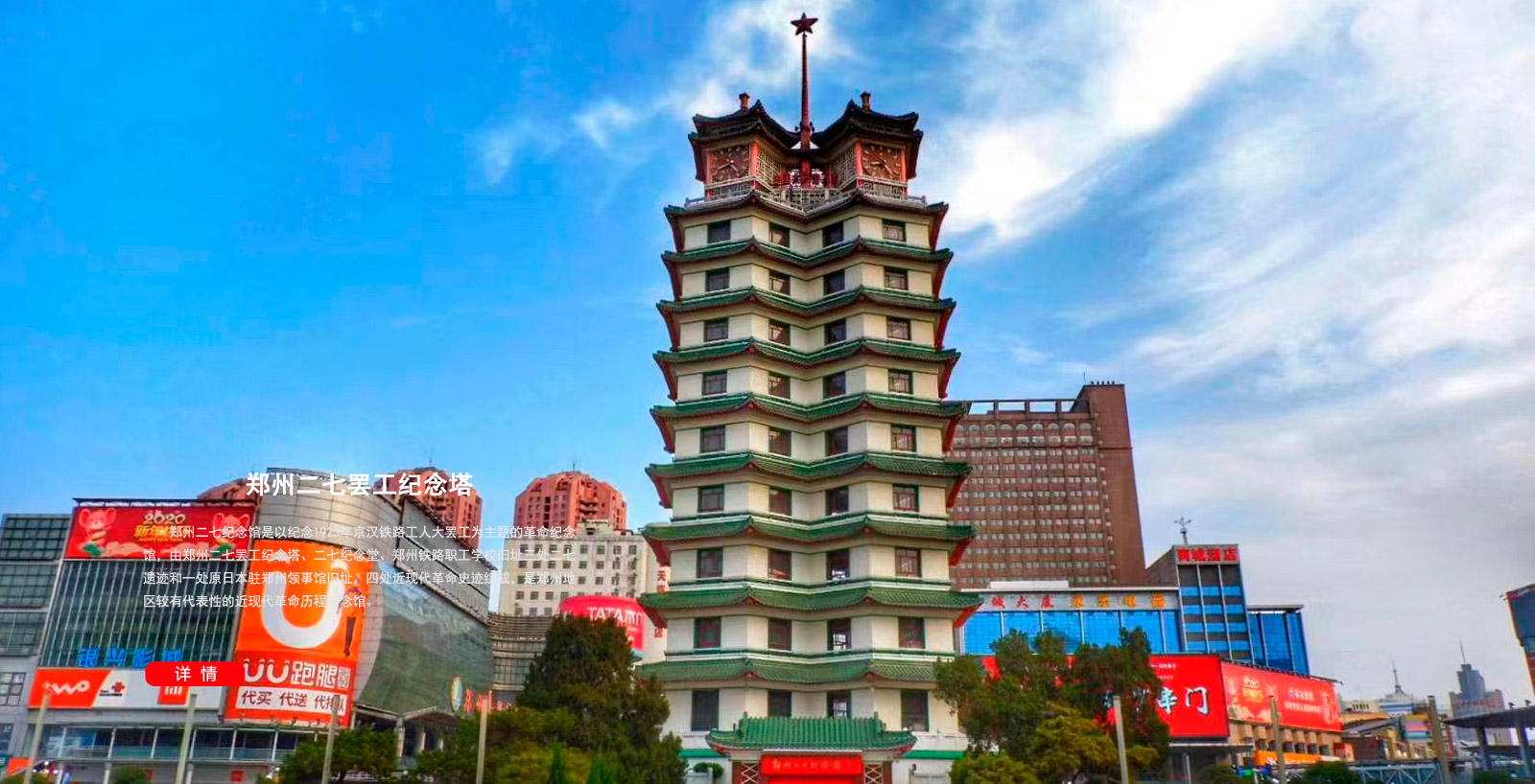 鄭州這座具有3600年歷史的商都,素有綠城之稱,更因“二七”名城而著稱于世。坐落于鄭州市中心的二七紀念塔40年來已成為這座城市的地標(biāo)。