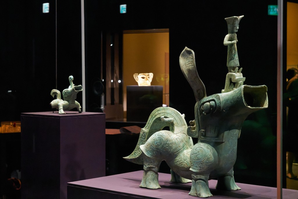 率先于博物館開箱亮相的4件珍貴文物包括1986年出土的國家一級文物“青銅二號神樹底座”,首度在四川省外展出、2020-2022年出土的“銅虎頭龍身像”、“金面罩”以及“青銅大神獸”。