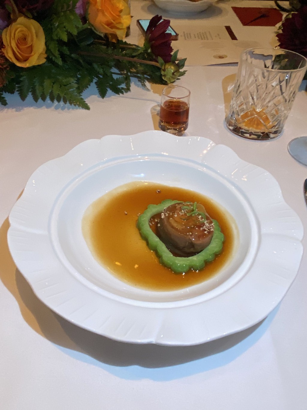 緊接著是攬下黑珍珠一鉆、西安凱悅的珍味?;屎睖?,梁福闊師傅將矜貴的鮑魚、海參、鮮蝦、帶子等海產(chǎn)拌入家常風(fēng)味胡辣湯,再撒下香氣撲鼻的海南胡椒,先喝一口味道淡雅,再來第二口散發(fā)麻辣鮮香,微辣而味長(zhǎng)的余韻于舌頭良久不散。