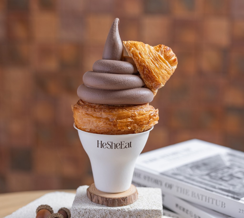 人氣輕食甜品店HeSheEat,于旺角THE FOREST開(kāi)設(shè)新地鋪,特別推出限定甜品“特濃5.0牛乳軟雪糕系列”,當(dāng)中的“牛角包 x 特濃5.0牛乳軟雪糕”富搞鬼新意,在牛角包內(nèi)藏“便便”造型的軟雪糕,是打卡之選。綿滑的牛乳軟雪糕奶味香濃,配香醇比利時(shí)朱古力軟雪糕,加上金黃酥脆的牛角包,帶來(lái)多重味覺(jué)享受。