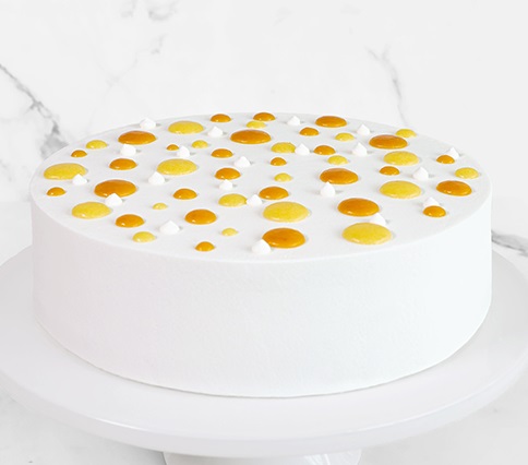 芒果海綿蛋糕(件裝 $68、原個(gè)蛋糕9吋 $680),造型清雅簡(jiǎn)約,白色淡忌廉佐橙黃果泥及海綿蛋糕,簡(jiǎn)單又美味。
