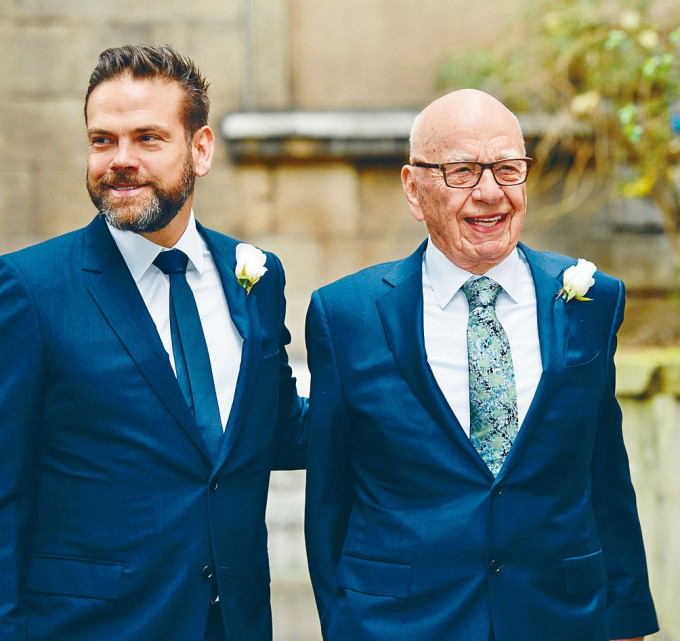 ▲默多克與長(zhǎng)子拉克蘭2016年攝于倫敦。