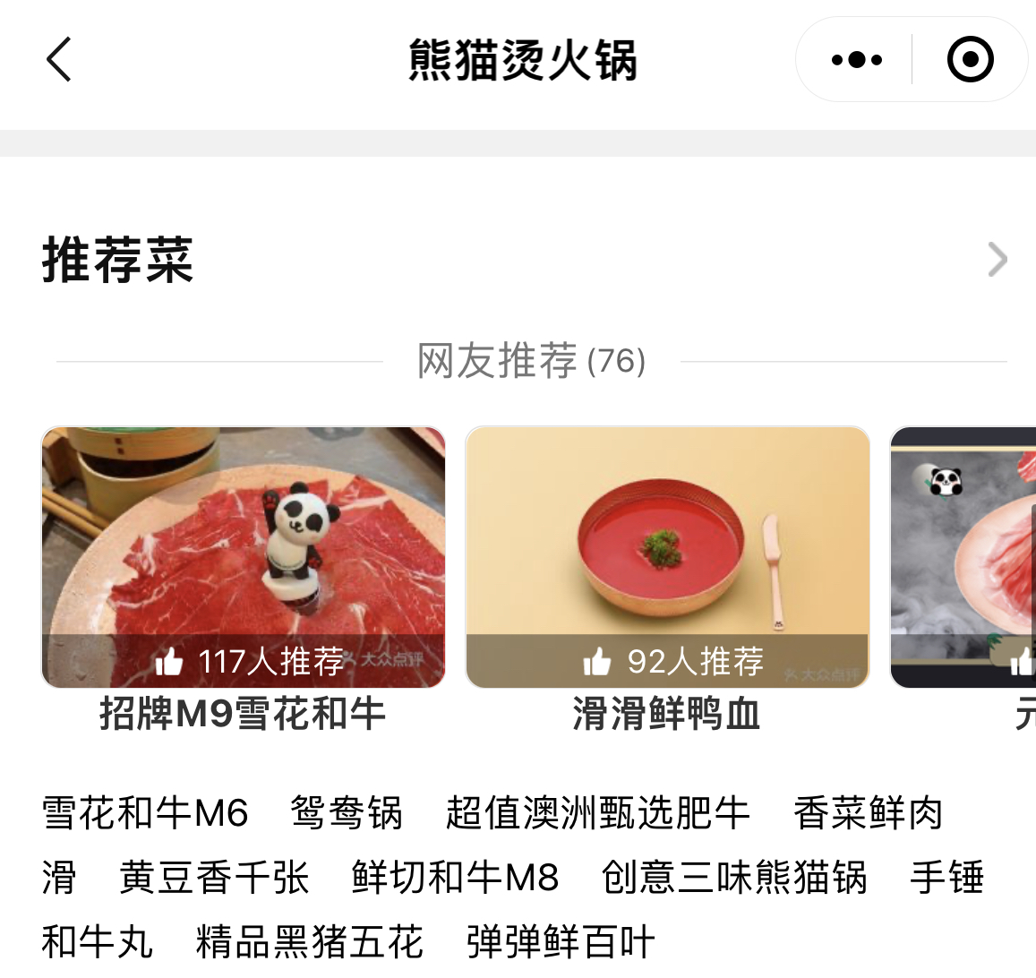 ▲選擇想吃的店后,下滑到“推薦菜”欄目。