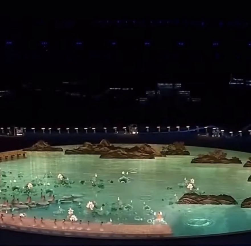 這次開幕式,現(xiàn)場(chǎng)將通過地上屏幕和立體透視網(wǎng)幕的配合,以裸眼3D的視效,直接將錢塘江和青山綠水搬到舞臺(tái)上。陸川導(dǎo)演透露,這個(gè)網(wǎng)幕是地球上最大的銀幕,有9個(gè)IMAX那么大。但總導(dǎo)演沙曉嵐預(yù)告,從電視機(jī)里看開幕式效果將不亞于現(xiàn)場(chǎng)。