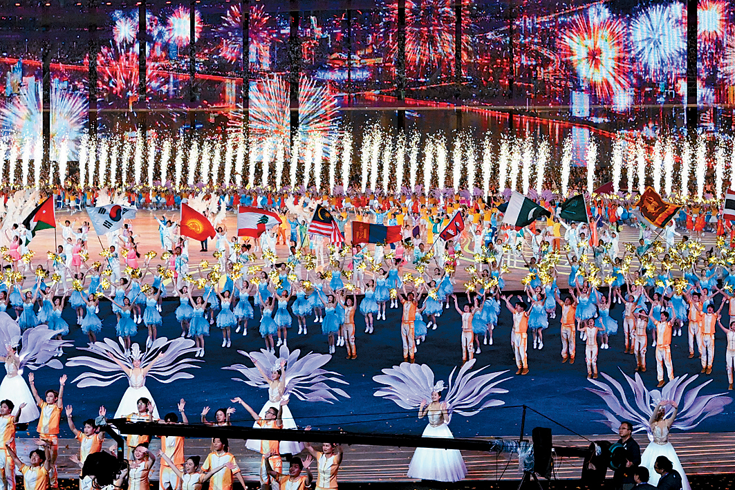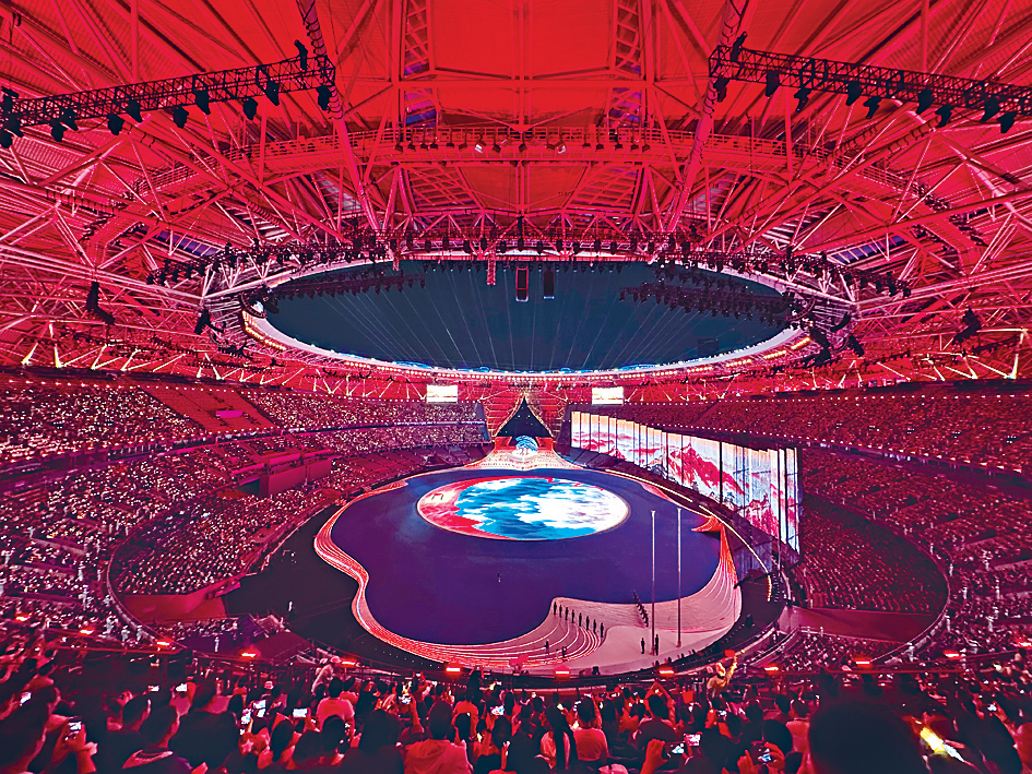 ▲亞運(yùn)開幕禮于有“大蓮花”之稱的杭州奧體中心體育場(chǎng)舉行。中通社