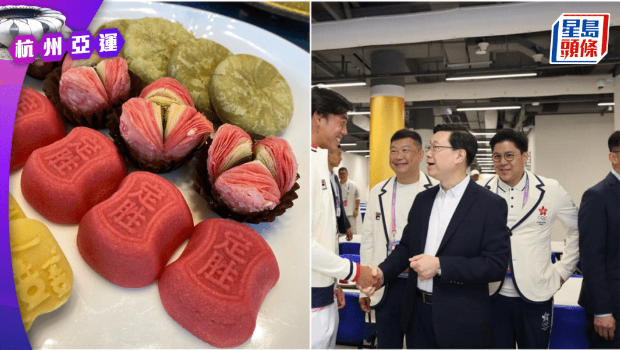 李家超指:“剛吃過杭州風(fēng)味的早餐。印象最深刻的是其中一個(gè)紅紅的糕點(diǎn),它的特別之處是上面用模子印上了“定勝”二字。特區(qū)政府駐浙江聯(lián)絡(luò)處的同事告訴我,它就是杭州名物之一‘定勝糕’。”