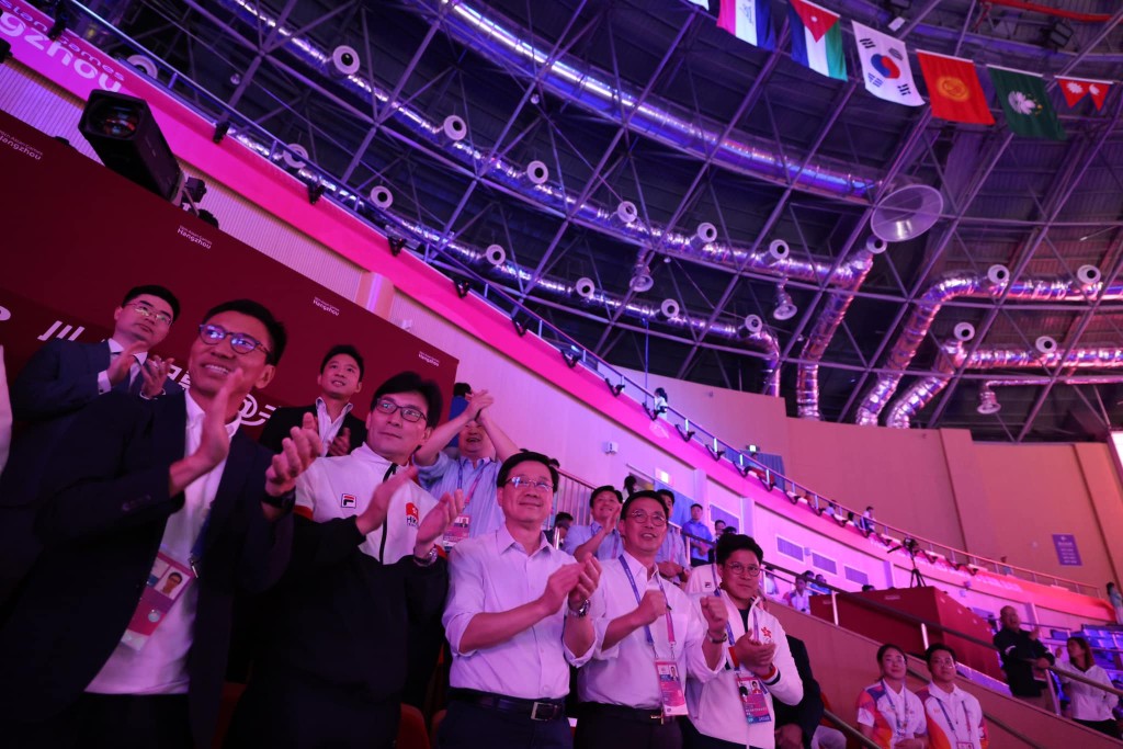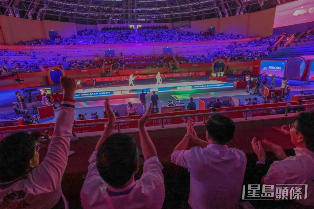 ▲行政長官李家超在現(xiàn)場觀賽,見證張家朗奪金。李家超fb