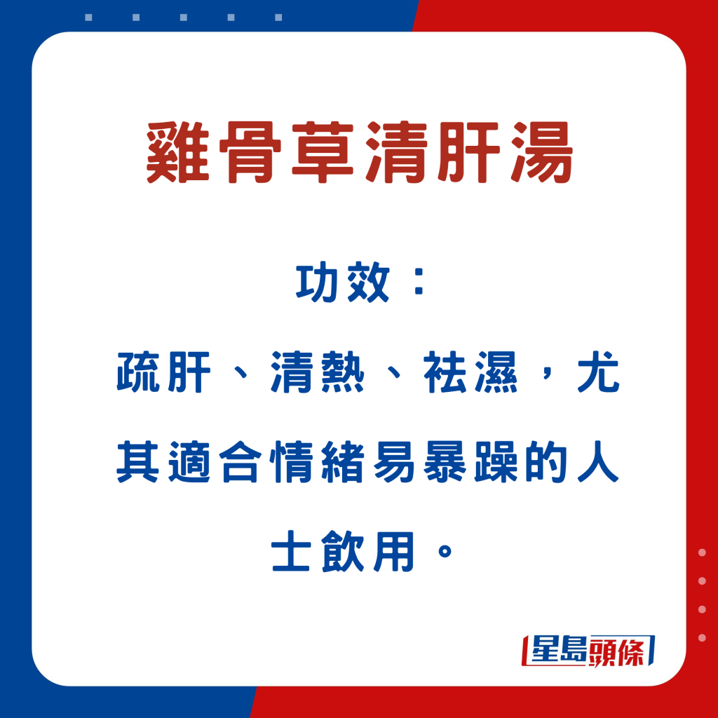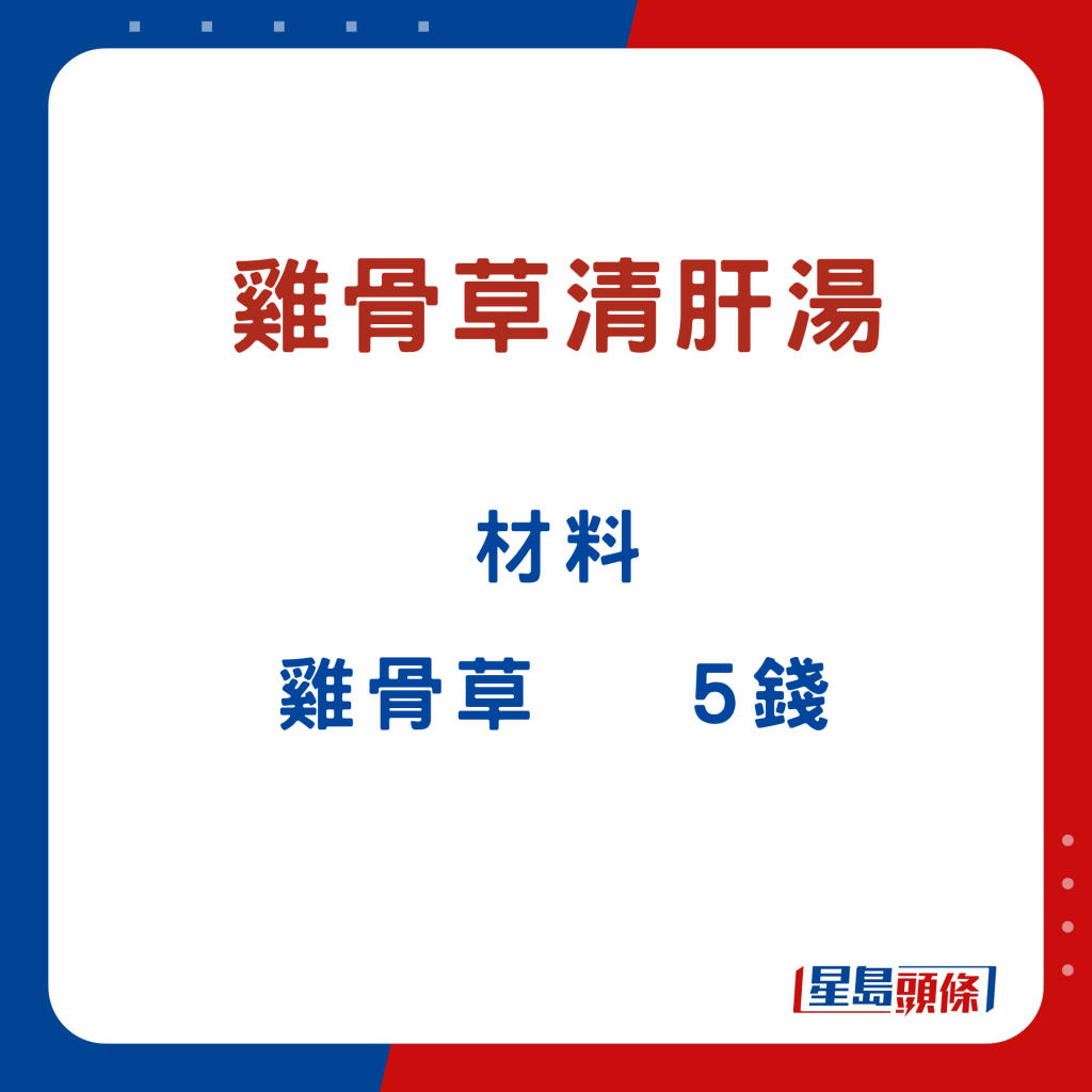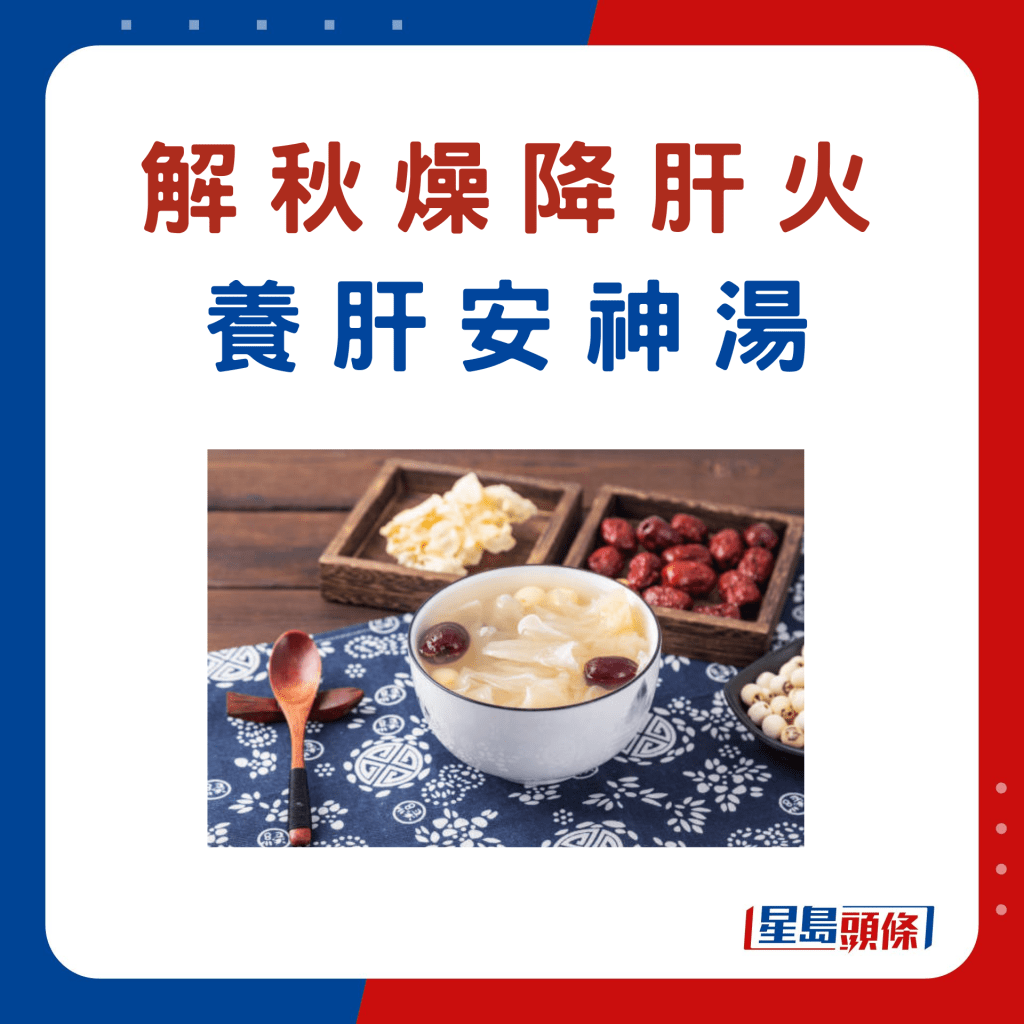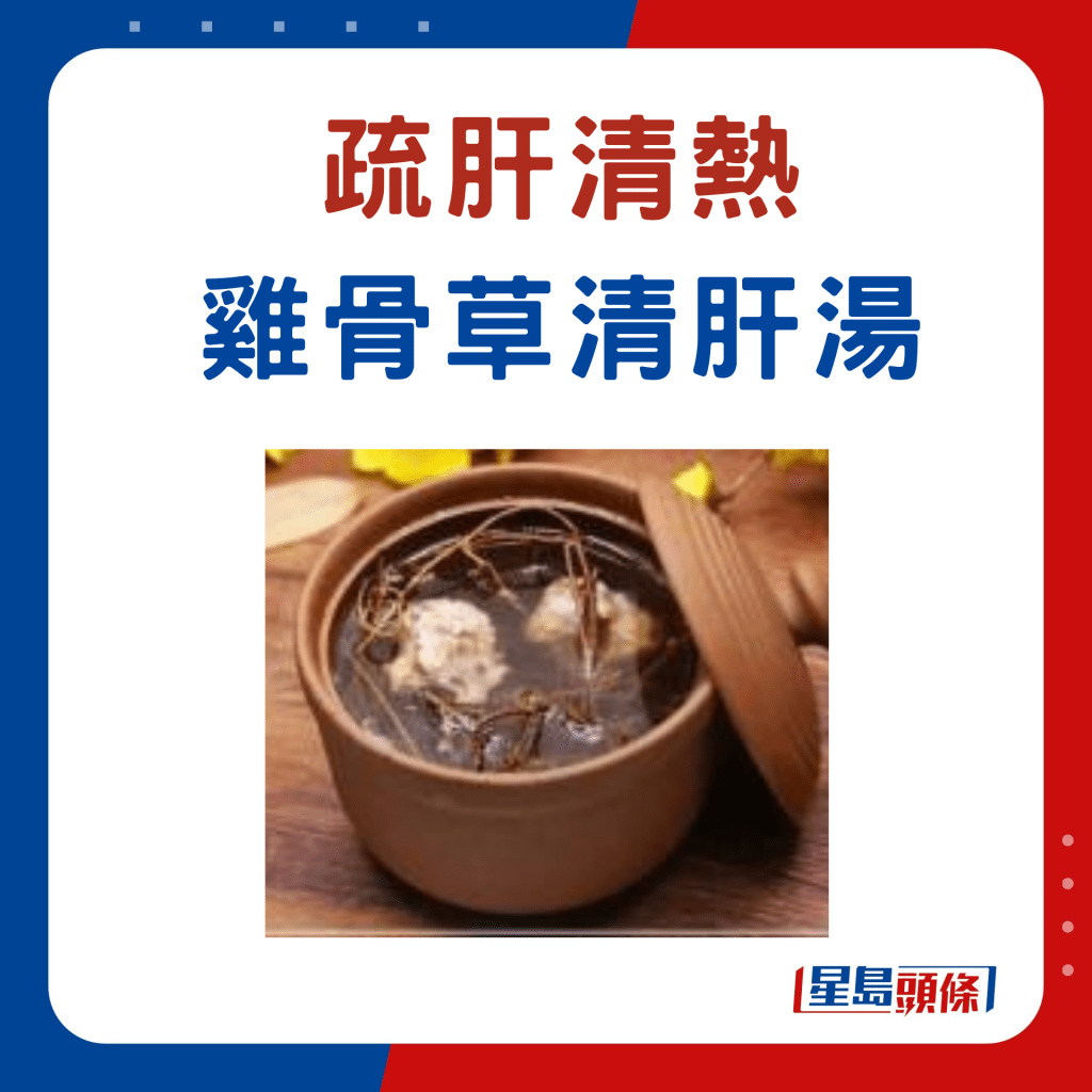 至于不愛(ài)吃糖水的人士,可以選擇以下2款湯水,同樣具有降燥、清肝火的功效,當(dāng)中包括雞骨草清肝湯、養(yǎng)肝安神湯,制法如下: