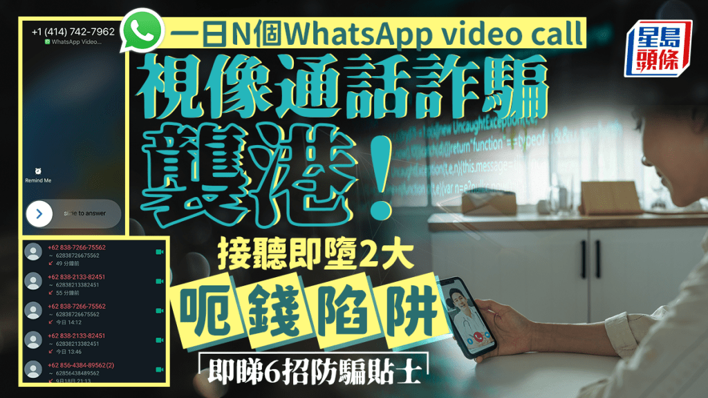 電話詐騙手法層出不窮,近日最常見(jiàn)的是視像通話!WhatsApp、微訊、iPhone內(nèi)置程式等都有視像通話功能,可以跟親友面對(duì)面對(duì)話原本是好事,但最近就有港人大呻,收到陌生WhatsApp video call 滋擾的情況大增。這些不明來(lái)歷的視像通話背后很可能是詐騙集團(tuán),萬(wàn)一接聽(tīng)了即有機(jī)會(huì)誤墮2大呃錢陷阱!