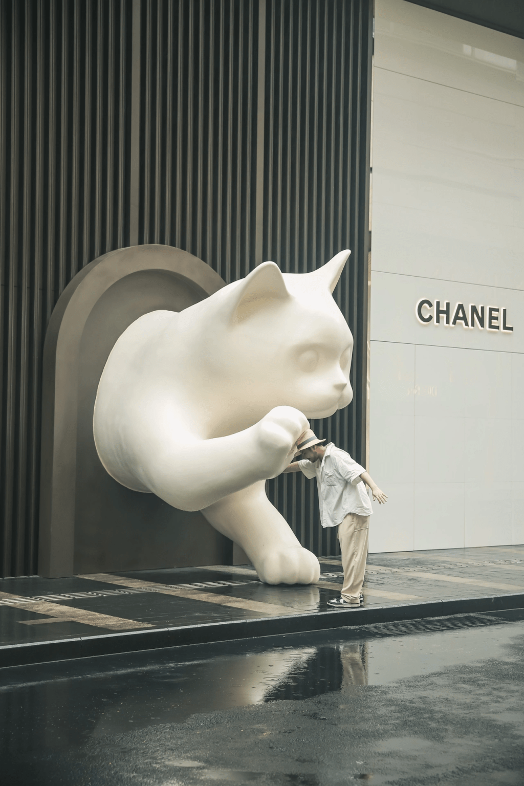 2. 第二站到時(shí)尚街區(qū)上的巨型貓爪、揮手貓貓、樓頂?shù)脑虑?/p>