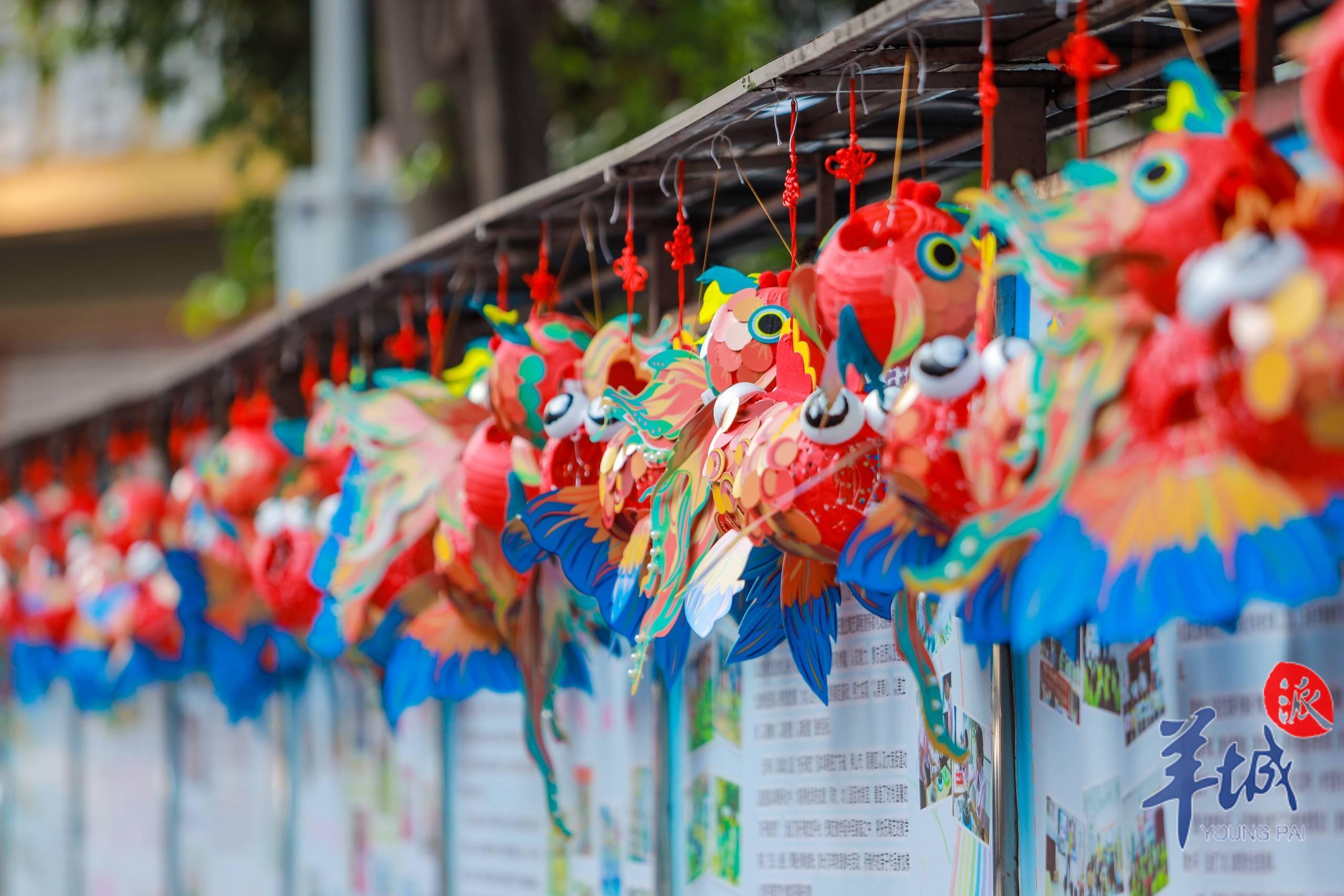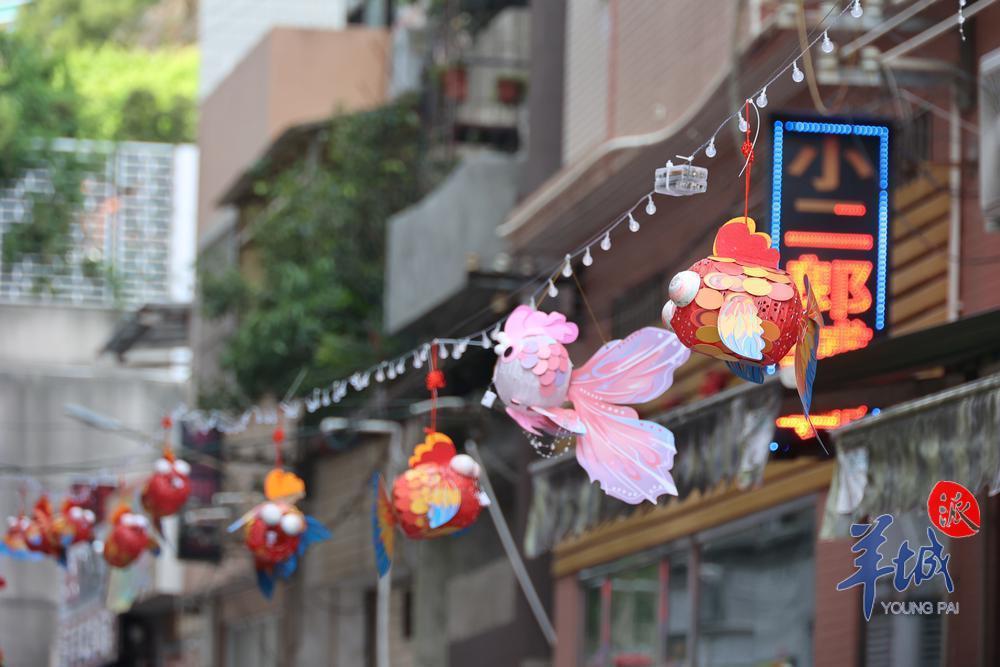 社區(qū)內(nèi),大街小巷掛滿了色彩繽紛的魚燈