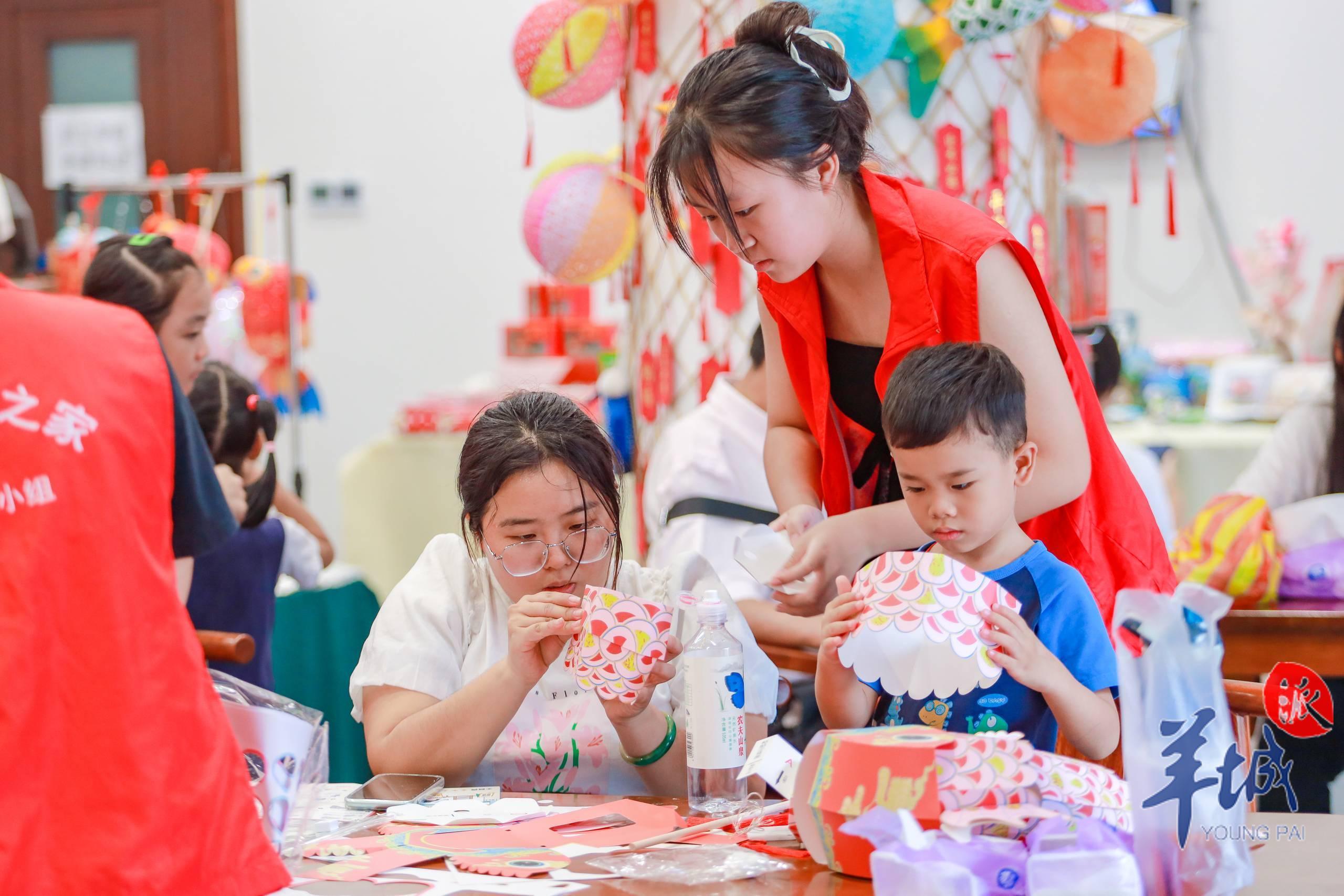 ▲一位媽媽和孩子正在學(xué)習(xí)制作簡易魚燈 受訪者供圖