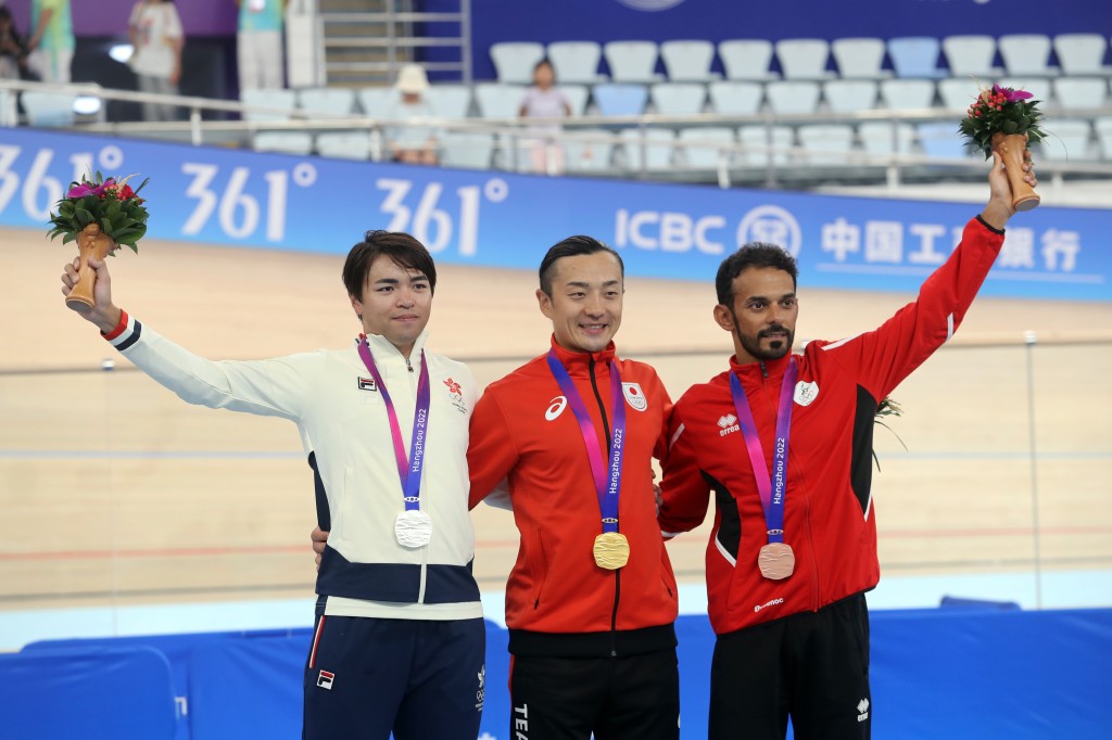 ▲梁嘉儒(左)在場地單車男子全能賽奪銀。