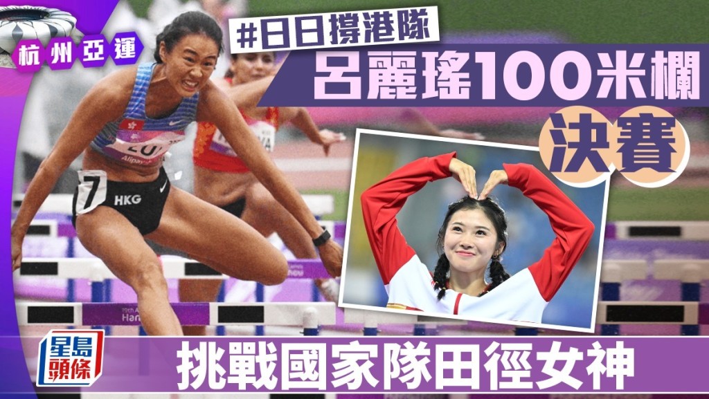 港隊(duì)呂麗瑤,已經(jīng)進(jìn)了女子100米跨欄決賽,由于對(duì)手好強(qiáng),唔易得獎(jiǎng)牌,希望她盡力超越自我,爆出冷門。