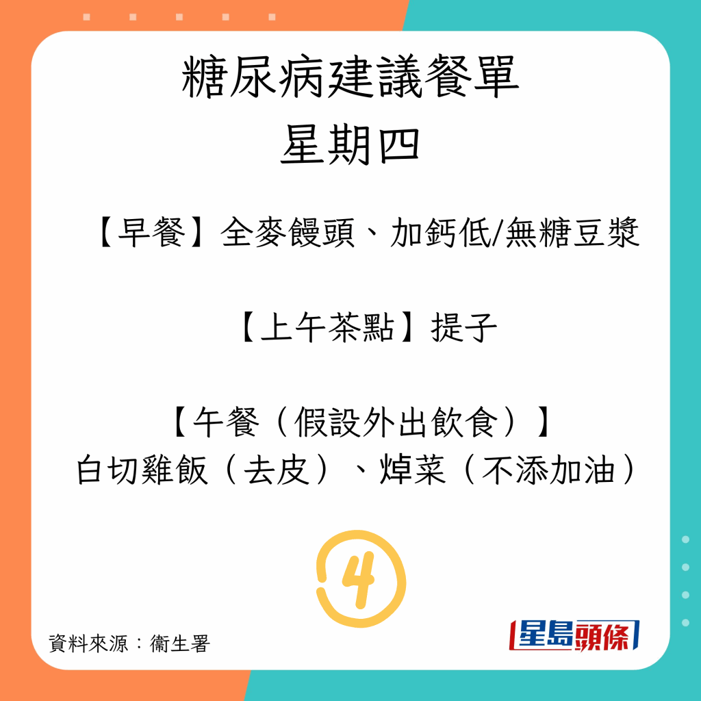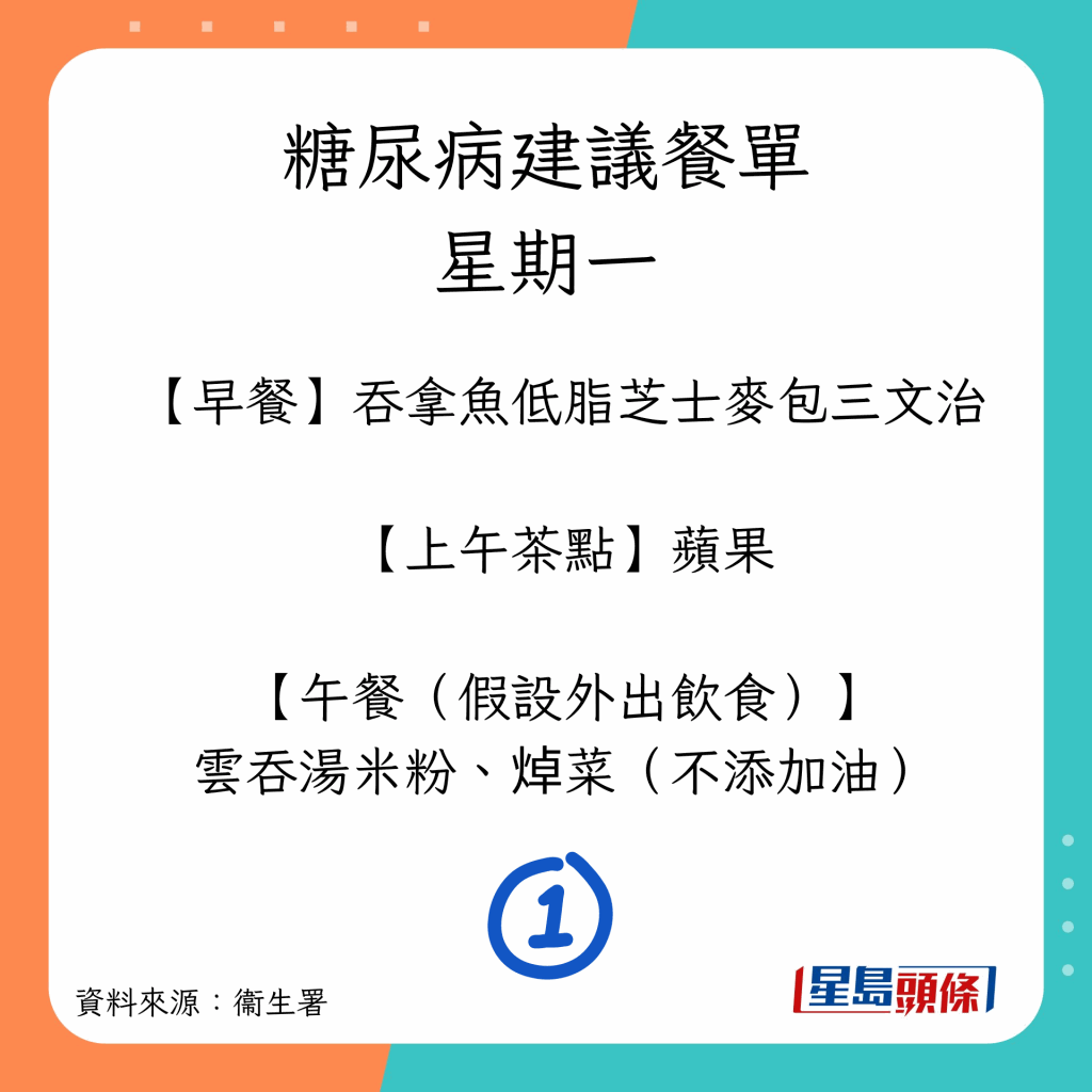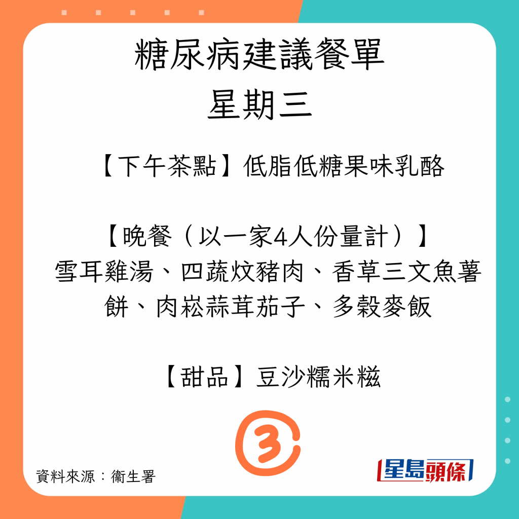 患糖尿病可以吃什么?衛(wèi)生署建議7日餐單