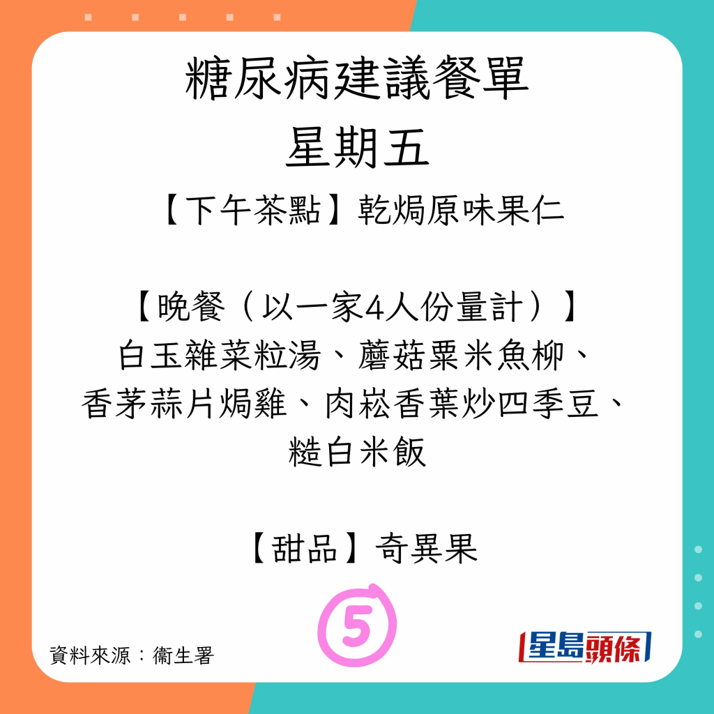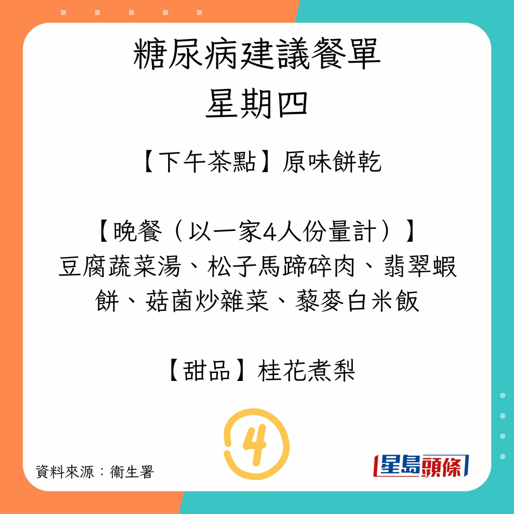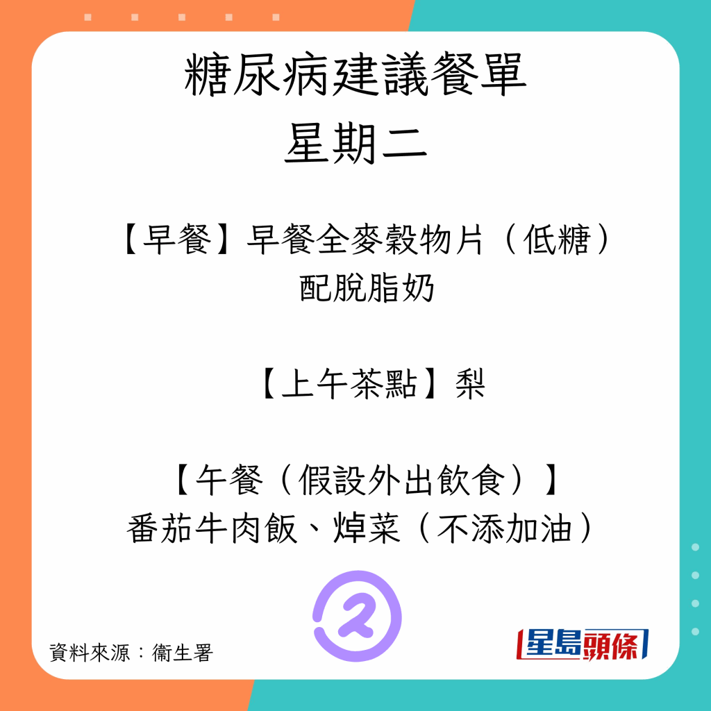 患糖尿病可以吃什么?衛(wèi)生署建議7日餐單