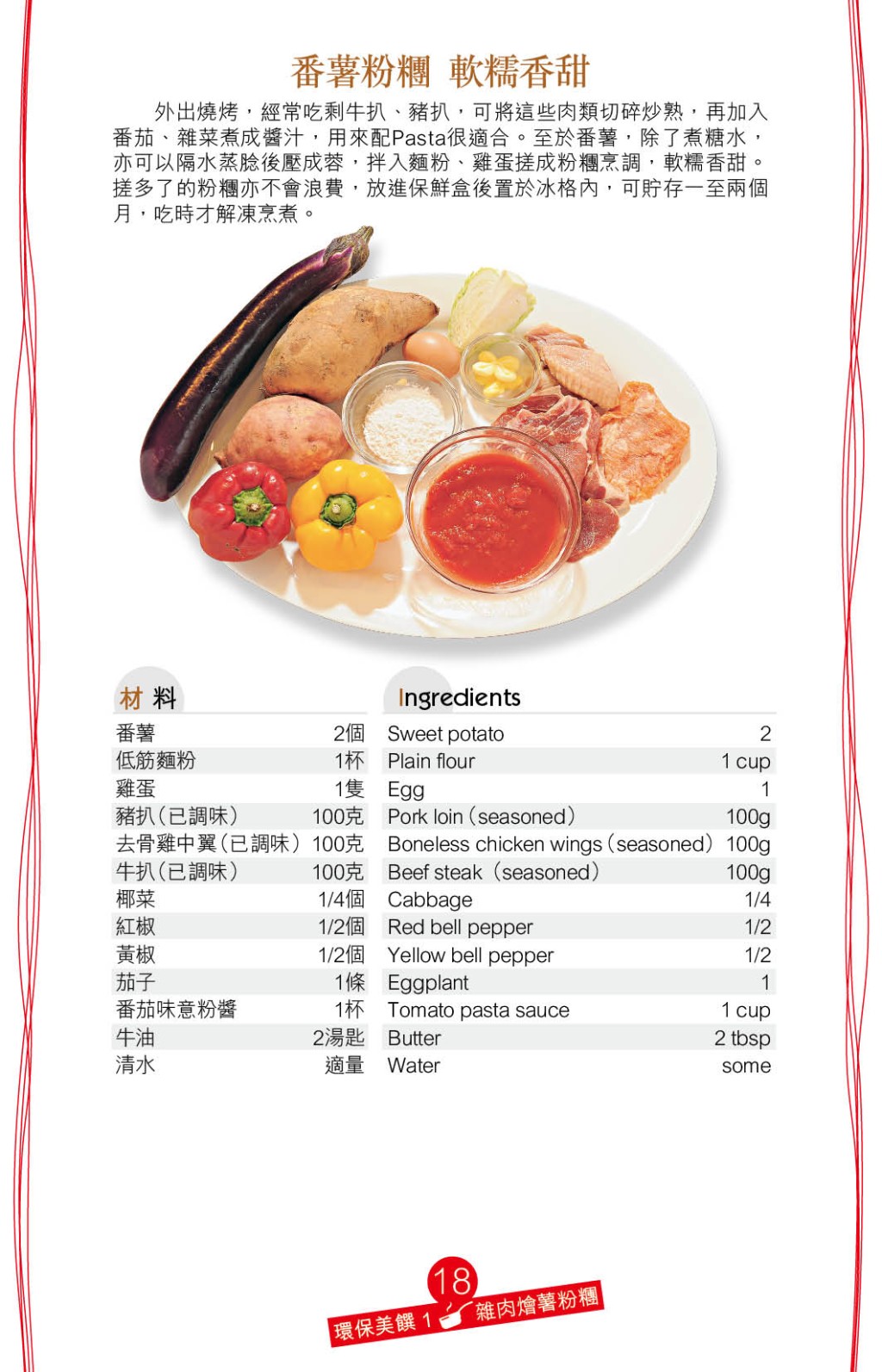 軟糯有嚼勁的粉團(tuán),其實(shí)自家制作亦簡(jiǎn)單。今日推介的雜肉燴薯粉團(tuán),材料十分豐富又惹味。先將已調(diào)味的豬扒、去骨雞中翼、牛扒切小塊,椰菜、茄子、紅及黃燈籠椒切小塊,備用。接著自制薯粉團(tuán),將番薯去皮、切塊及壓成蓉,加低筋面粉、雞蛋及清水拌成面團(tuán),先搓成長(zhǎng)條再切粒,煲滾水將面團(tuán)粒煮至浮面。起油鍋炒熟肉類,加入蔬菜粒炒勻,下意粉醬煮滾,加入煮熟的薯粉團(tuán)略煮,最后加入牛油增加香味。這道雜肉燴薯粉團(tuán)包括蔬菜、肉類和淀粉主食,味道酸香醒胃,是營(yíng)養(yǎng)豐富的簡(jiǎn)餐。