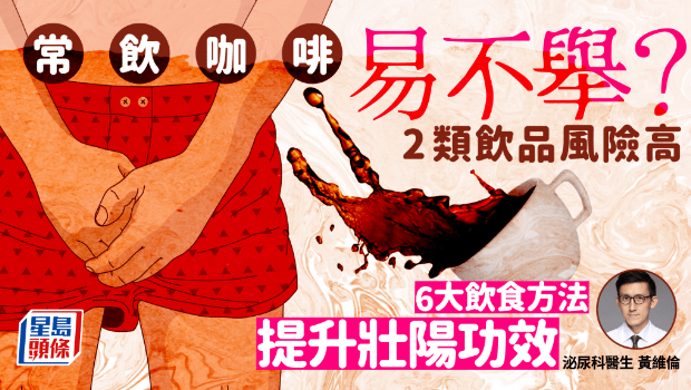 不舉、難勃起,可能與飲食習(xí)慣有關(guān)。有泌尿科醫(yī)生指,若過量喝2類飲品容易導(dǎo)致不舉,其中包括咖啡。他提醒,若要增強(qiáng)壯陽功效,避免不舉,就要避開6大飲食禁忌。