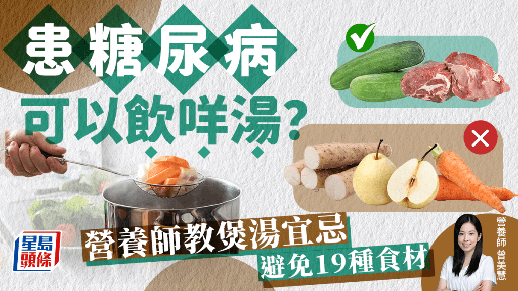 營養(yǎng)師曾美慧表示,一些高淀粉質(zhì)或高糖分的食材,例如粉葛、南瓜、青紅蘿卜、粟米、乾豆、紅棗、羅漢果等,用來煲湯后,食材中的糖分會在高溫烹煮下溶于湯水中,飲用后容易血糖急升。故此,糖尿病患者宜盡量避免。