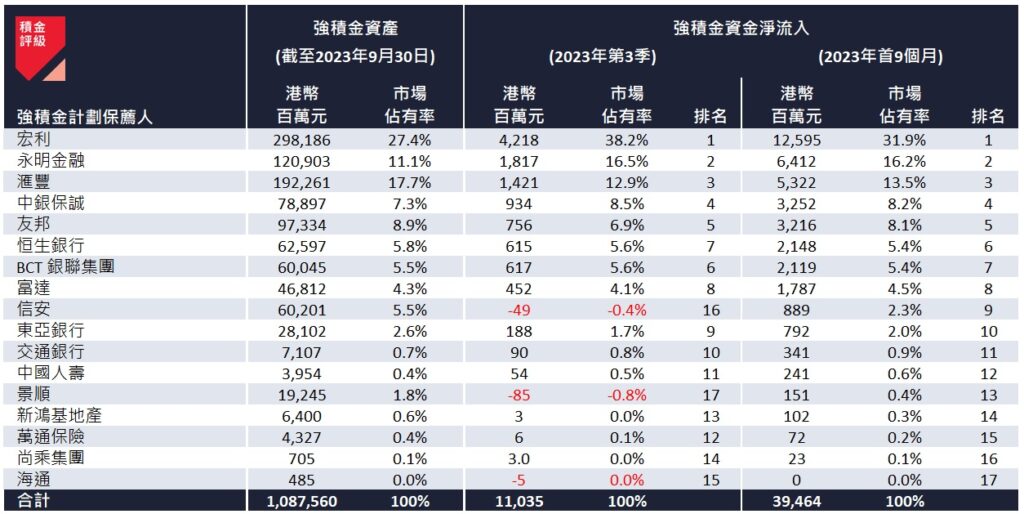 2023 年第3 季及首9 個月的強積金計劃保薦人資金流。
