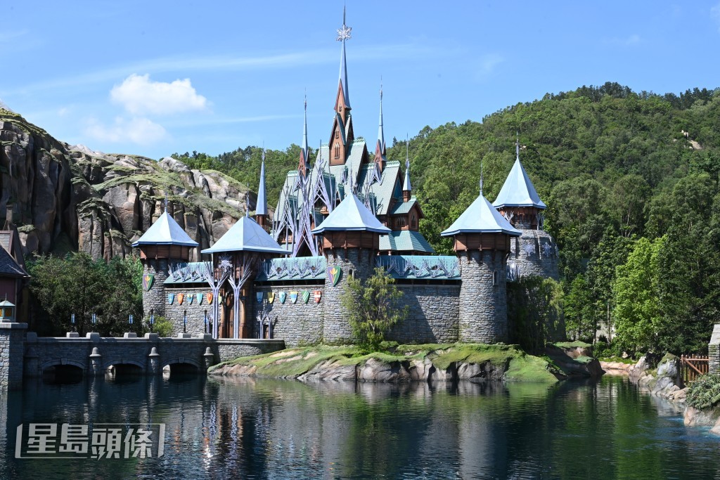 來到Frozen園區(qū),當然要去愛莎及安娜成長的阿德爾城堡參觀!來到阿德爾王國的中心點“國王橋”,可飽覽阿德爾城堡的景色。城堡以1:1比例還原電影形象,詳細一看,可發(fā)現(xiàn)城堡上的藍色瓦片屋頂、塔樓、木制圍欄等等,一磚一瓦的細節(jié)還原度高。在國王橋上亦可以眺望阿德爾的最高點“北山”及山上的冰雪皇宮