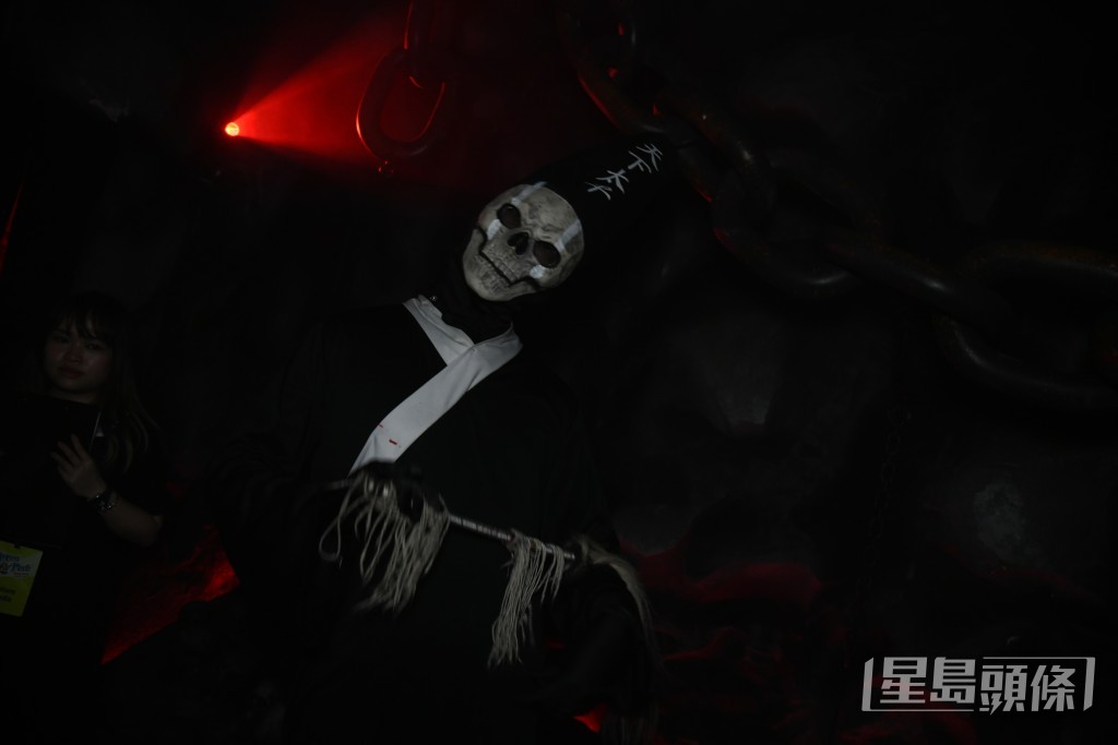 “怨靈異域”進(jìn)一步揭開“怨靈鬼?!逼哿枋录南掳爰?,進(jìn)入女學(xué)生的葬禮,慢慢推開通往地獄的大門,由牛鬼蛇神帶你接受審判,途中更有逼真尸體、鬼魂找人陪葬,驚嚇程度絕對(duì)是滿分。