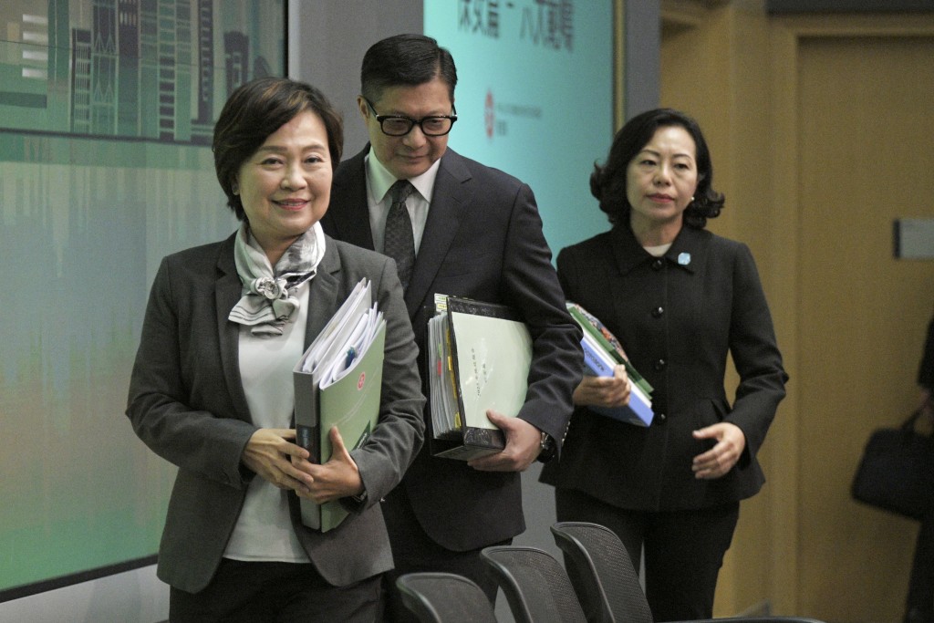 ▲蔡若蓮(左一)表示,人文科的教學(xué)內(nèi)容、模式,及評估均與現(xiàn)時(shí)常識科沒有太大變化。