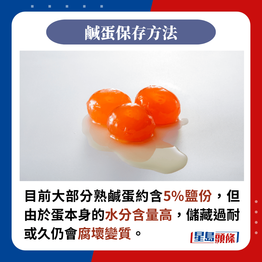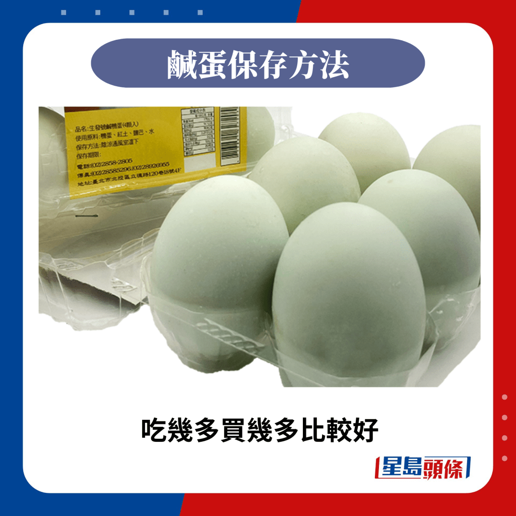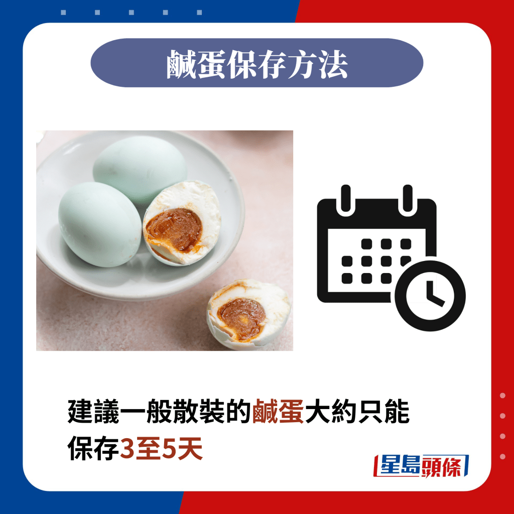 建議一般散裝的咸蛋大約只能保存3至5天。