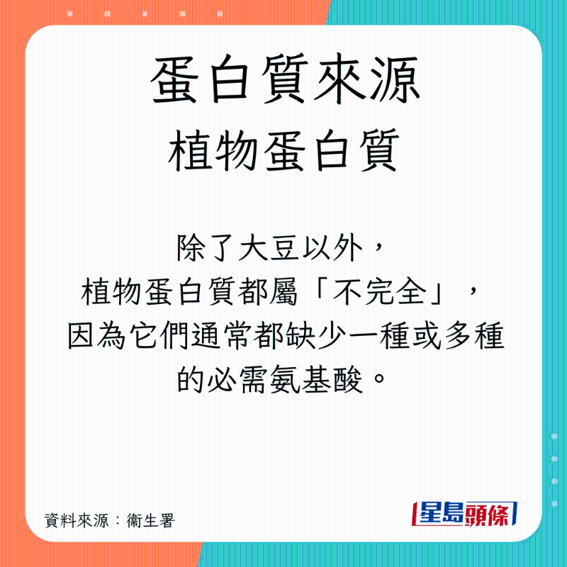 根據(jù)衛(wèi)生署資料,蛋白質(zhì)分為動物及植物2大來源: