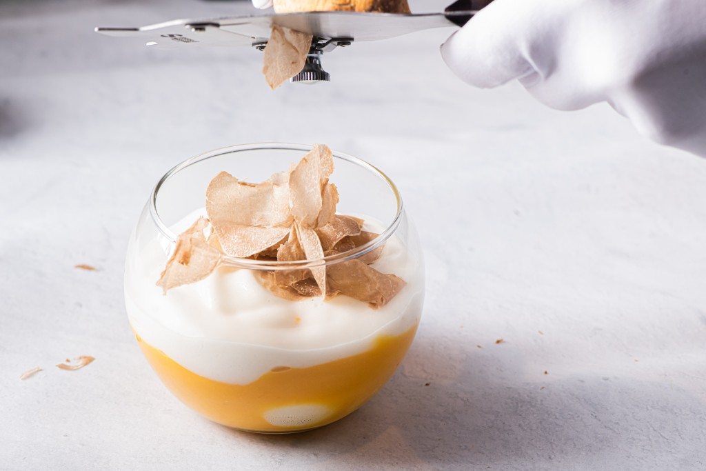得來不易的上等白松露,帶有菇菌、蒜頭及蜂蜜等層次分明的獨特香氣和味道,要保留白松露最佳風(fēng)味不宜烹煮或加熱,因此不少名廚都會在客人面前,即席為菜式刨上白松露薄片,讓食客的味覺與嗅覺享受最鮮濃的白松露香氣。挑選食材配白松露,適合伴清淡不會太過濃郁的雞蛋、意粉、蘆筍或雞肉,避免搶去白松露的馥郁芬芳。
