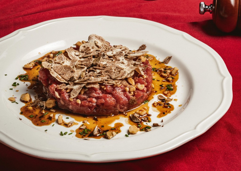 ▲Pirata限定4道菜的白松露晚餐——松露和牛他他,將和牛的濃郁香味與阿爾巴頂級白松露的口感融為一體,佐蘑菇汁及烤榛子更清香。