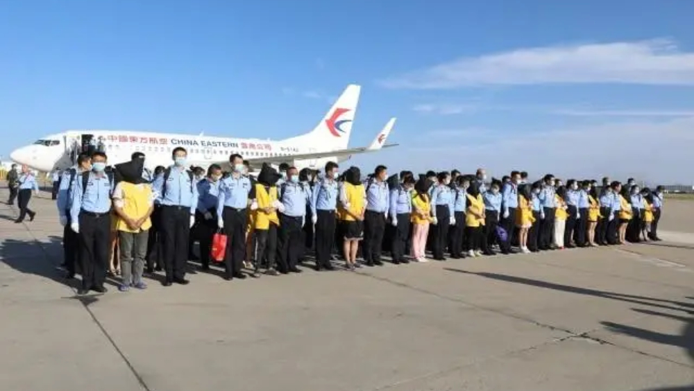 內(nèi)蒙古早前押解40名緬北電騙疑犯歸案。 央視截圖