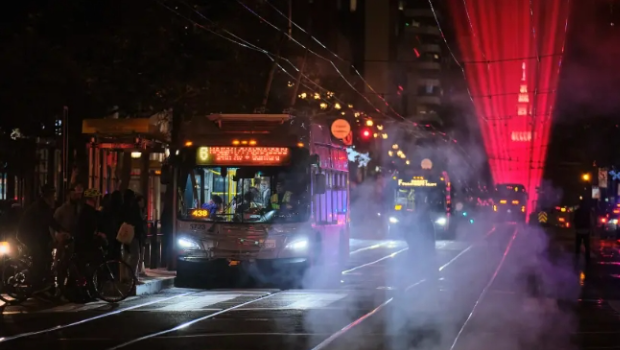 舊金山市場街從11月13號晚上起點(diǎn)亮激光燈帶,慶祝亞太經(jīng)合組織(APEC)峰會召開。這條長達(dá)3英里的激光彩虹從輪渡大樓出發(fā),照亮市場街上空。這個醒目的激光裝置名為“照亮舊金山”(Illuminate SF),由同名的激光裝置藝術(shù)組織和非牟利基金會Civic Joy Fund共同打造,從13日至17號,在每天日落后至第二天日出前點(diǎn)亮。主辦方稱裝置耗資15萬美元,仍在眾籌經(jīng)費(fèi),旨在展現(xiàn)舊金山與21個APEC經(jīng)濟(jì)體的團(tuán)結(jié)合作。