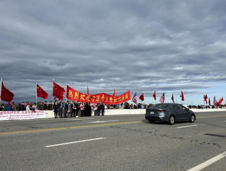 中國(guó)國(guó)家主席習(xí)近平14日下午抵達(dá)舊金山國(guó)際機(jī)場(chǎng)。大批僑胞一早在機(jī)場(chǎng)外等候,拉起“熱烈歡迎習(xí)近平主席訪問(wèn)美國(guó)”橫幅,揮動(dòng)五星紅旗,迎接習(xí)近平主席車隊(duì)。