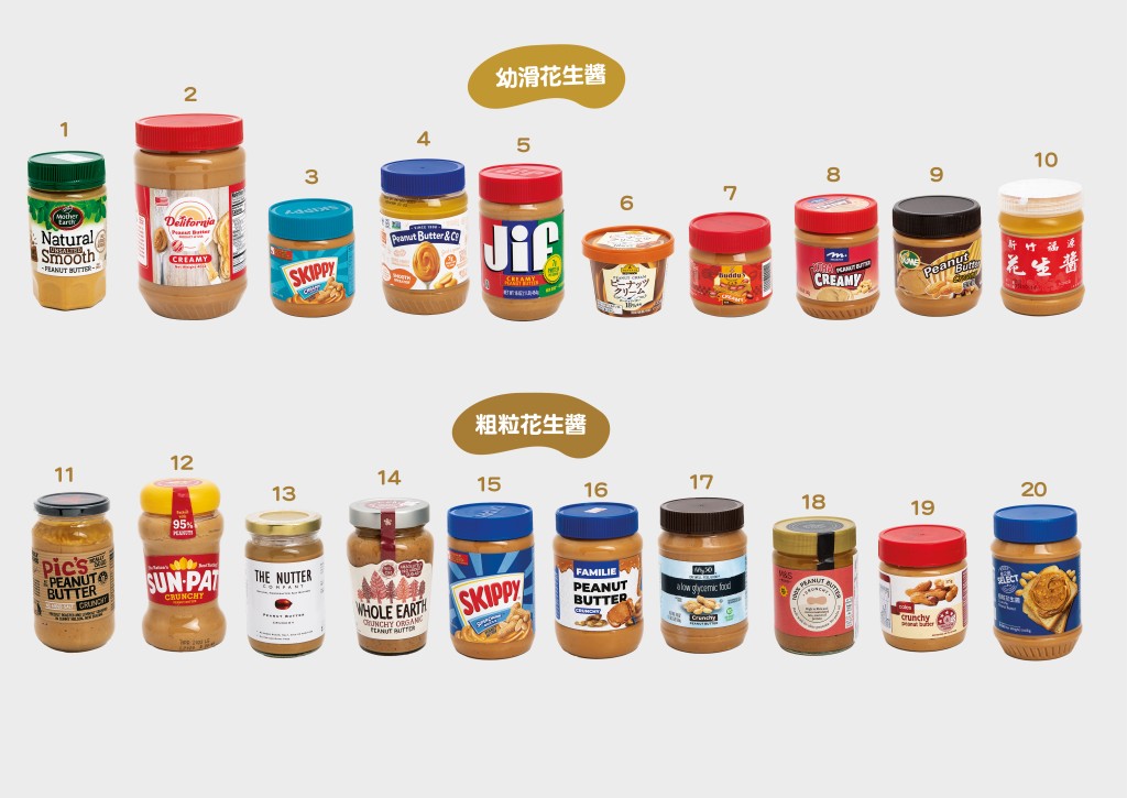 測(cè)試10款粗粒和10款幼滑花生醬。