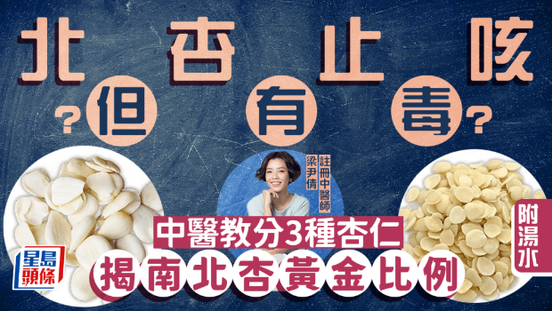 梁醫(yī)師指,因北杏帶有小毒,故一般不會獨立使用,煲湯時多配合南杏同用。 在混合南杏及北杏時,建議比例至少1:1,甚至是4:1(南杏:北杏)。