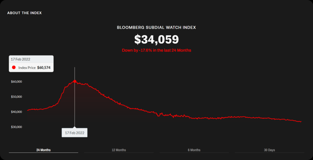 作為世界上著名的名表品牌,勞力士(Rolex)向來都是人們投資保值之選,惟其二手價(jià)格近年一沉不起。最新彭博Subdial名表指數(shù)(Bloomberg Subdial Watch Index)顯示,勞力士已跌至兩年新低。