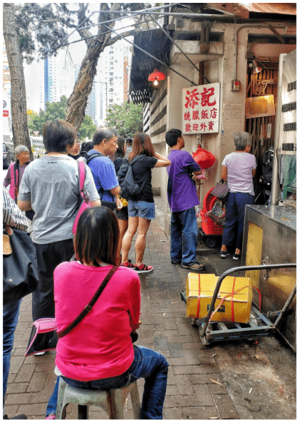 日前有網(wǎng)民在“香港茶餐廳及美食關(guān)注組”群組分享,指自己在元朗添記燒臘飯店排隊(duì)中。圖中所見事主前面還有幾位客人在等候。事主更以“好緊張、好緊張”來形容,擔(dān)心排隊(duì)輪到他時(shí)食品已經(jīng)全部售罄,空手而回。結(jié)果,事主成功購得一盒燒肉飯及一盒叉燒燒肉飯,更表示買到他心中的必買之選“黑湯”。有人留言詢問燒味飯價(jià)錢,獲事主回復(fù)指單拼飯$28、雙拼$30、湯$12,燒腩仔則賣$188一斤,事主更大贊價(jià)錢非?!坝幸馑肌?,令大眾都能享受美味的燒味飯。