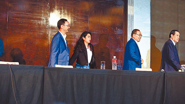 ▲藍(lán)白合會(huì)談23日不歡而散,國(guó)民黨2024參選人侯友宜(左二)、前領(lǐng)導(dǎo)人馬英九(右)、國(guó)民黨主席朱立倫(左)起身離開會(huì)場(chǎng)。中時(shí)網(wǎng)
