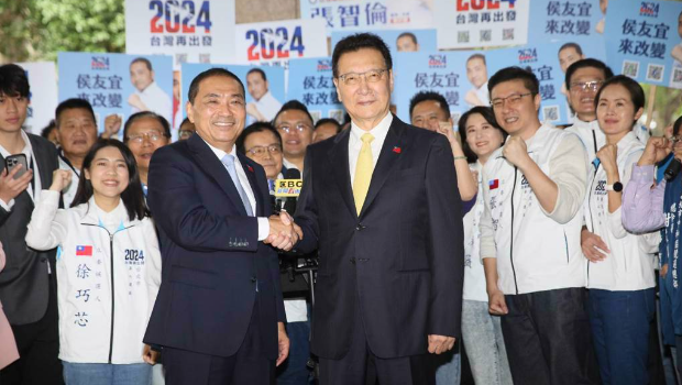 國民黨參選人侯友宜與副手趙少康24日到“中選會”正式參選登記。