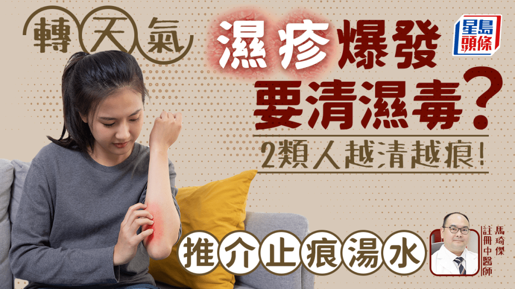 轉(zhuǎn)季天氣干燥,忽冷忽熱,濕疹易發(fā)作?;加袧裾罹鸵欢ㄒ鍧穸??注冊中醫(yī)師馬琦杰表示,濕疹可分為6大類型,治療方法也不同,有2類濕疹患者不宜清濕毒。若用錯(cuò)方法,就如同火上加油,痕癢紅腫情況越發(fā)嚴(yán)重。另他推介紓緩濕疹的湯水食療,有助止癢。