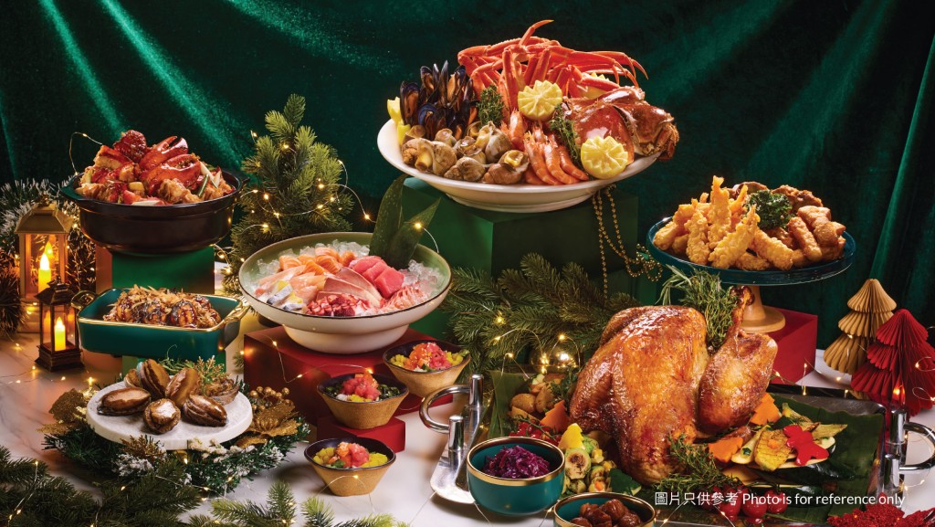 而圣誕節(jié)日自助餐美食包括有烤圣誕火雞配雞肝肉汁、傳統(tǒng)面包釀餡、豬肉腸煙肉卷和小紅莓醬、烤圣誕蜜糖火腿、傳統(tǒng)熱溶瑞士拉可雷特芝士等等,亦有香煎北海道帶子配芝士忌廉汁及新鮮黑松露、即煮黑松露意大利粉、法式芝士焗生蠔; 喜歡吃海鮮的朋友就不要錯(cuò)過即開生蠔、龍蝦、雪蟹腳。 甜品控必吃自家制意大利雪糕、瑞士瑞克雷奶酪雪糕、黑松露白朱古力慕絲、圣誕木頭蛋糕、圣誕德國史多倫面包、傳統(tǒng)圣誕布甸、法式燉蛋及芝士慕絲、姜餅?zāi)究凡嫉榧盁h姜餅流心芝士撻。