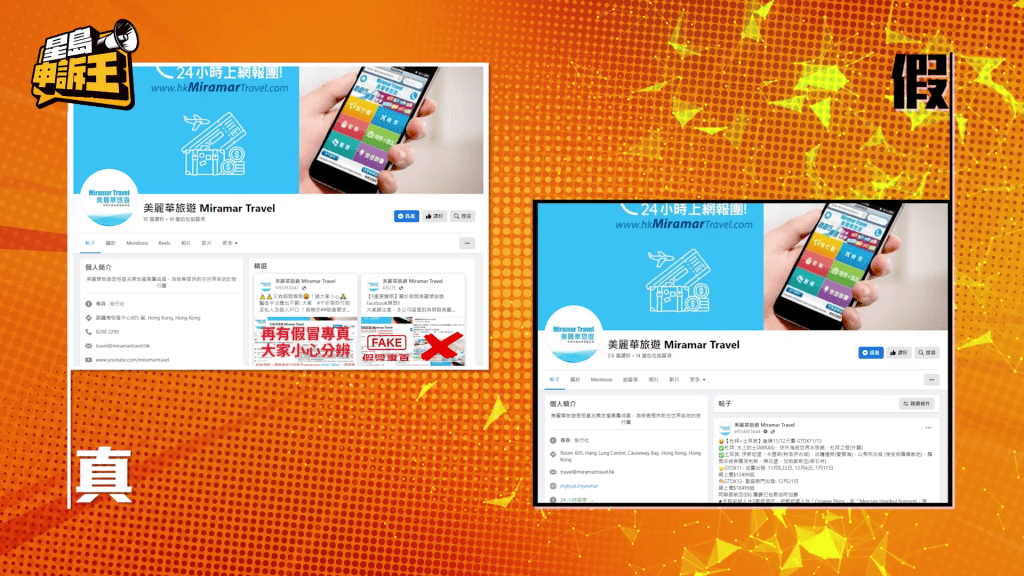 本港幾間知名旅行社的官方專頁,都被騙徒完全復(fù)制,令消費者難以分辨。
