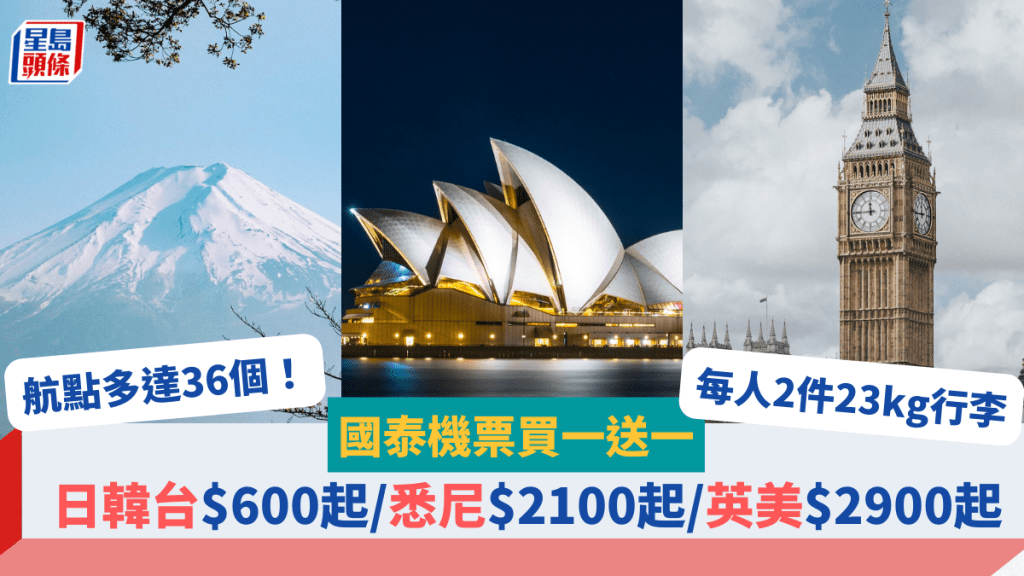 平時長途機(jī)票要價不菲,用里數(shù)換取又非?!叭獬啵ㄐ奶郏?,今次國泰機(jī)票買一送一優(yōu)惠,部分旅行社如東瀛游、永安旅游、安達(dá)旅運(yùn)等提供長途機(jī)票優(yōu)惠。 其中以安達(dá)旅運(yùn)的長途航點(diǎn)最多,包括倫敦、巴黎、紐約、洛杉磯、舊金山、悉尼、墨爾本等地,人均低至$2,100起。