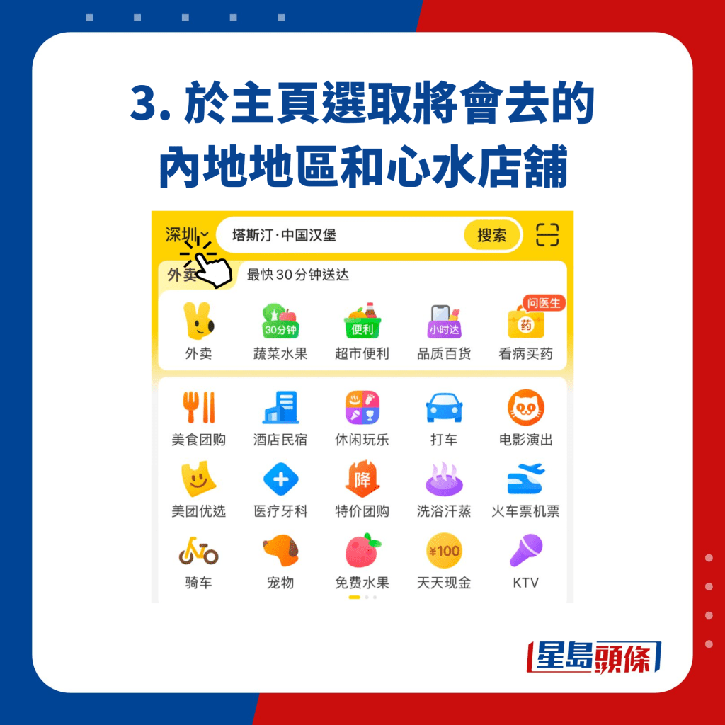 于主頁(yè)選取將會(huì)去的內(nèi)地地區(qū)/心水店鋪