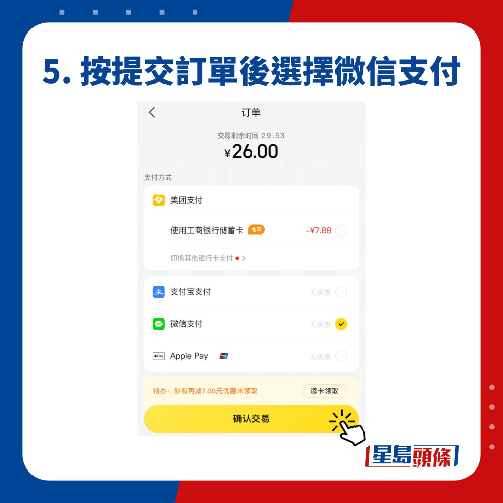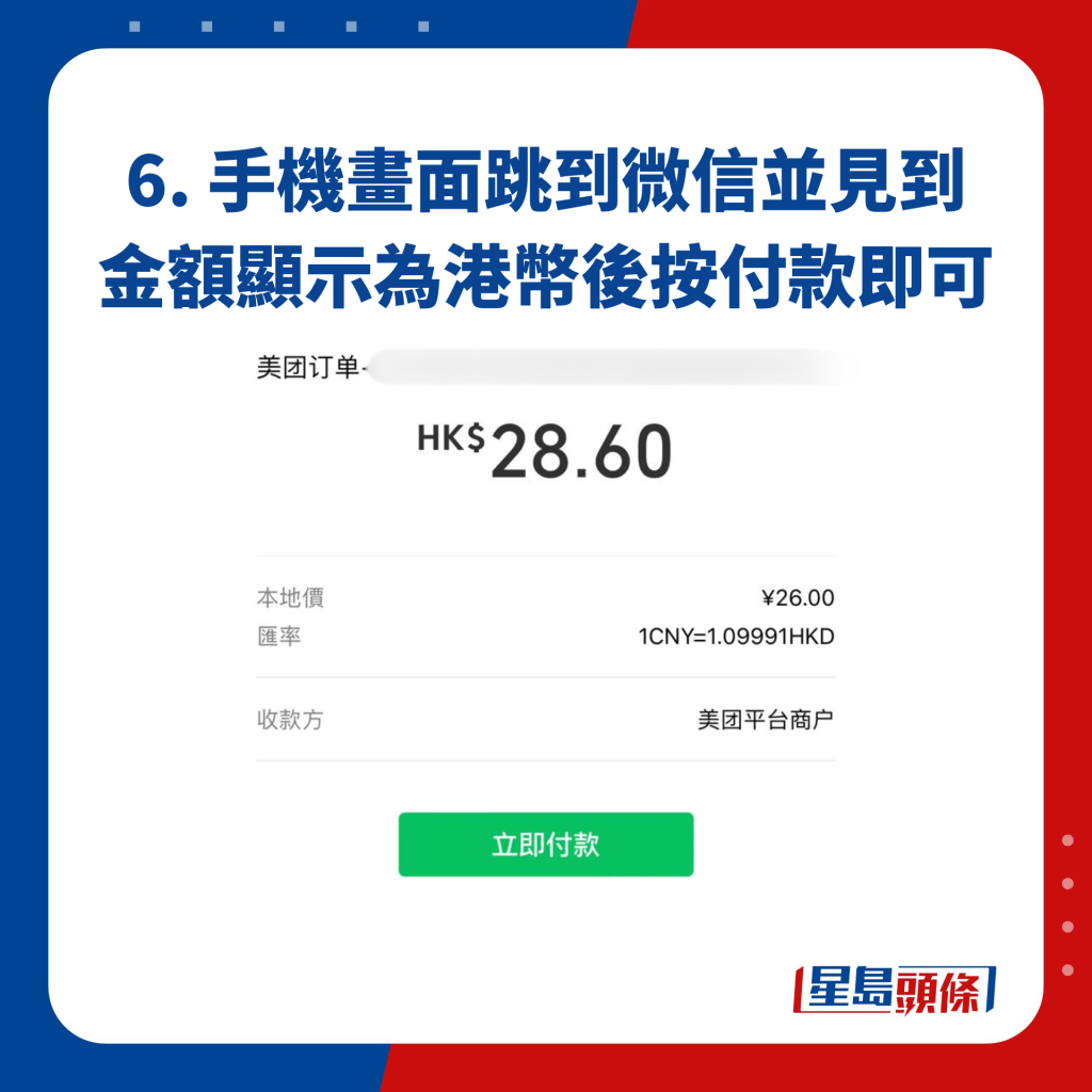 手機(jī)畫(huà)面跳到微信并見(jiàn)到金額顯示為港幣后按付款即可