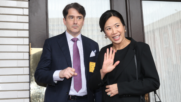 ▲吳欣盈最新財(cái)產(chǎn)申報(bào),并未見(jiàn)比利時(shí)籍配偶的財(cái)產(chǎn)。圖為吳欣盈(右)3月底在“立院”質(zhì)詢,其夫婿雷諾(左)到場(chǎng)旁聽(tīng)。