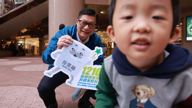 公務(wù)員事務(wù)局推區(qū)選手機(jī)貼圖讓巿民“撳個掣”宣傳,鄧炳強銅鑼灣派傳單吁“幾忙都要揀”