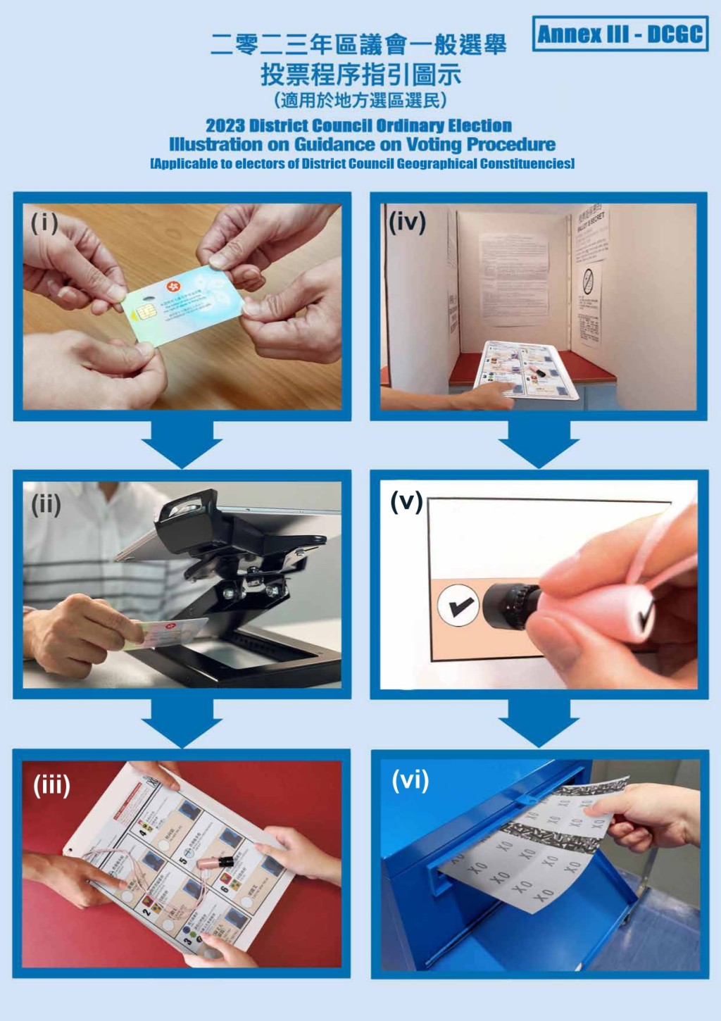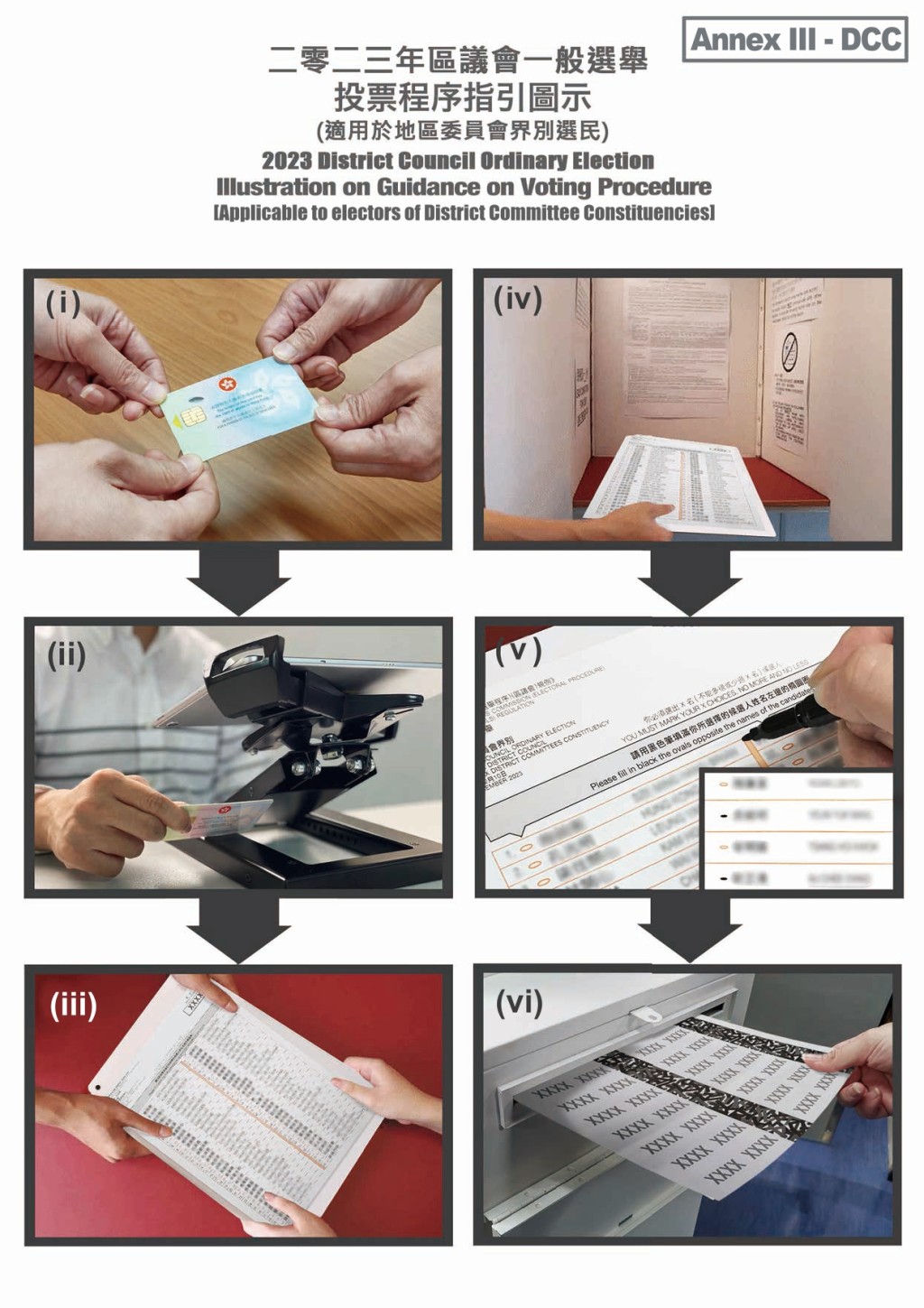 ▲地區(qū)委員會(huì)界別選舉投票程序。 政府文件圖片